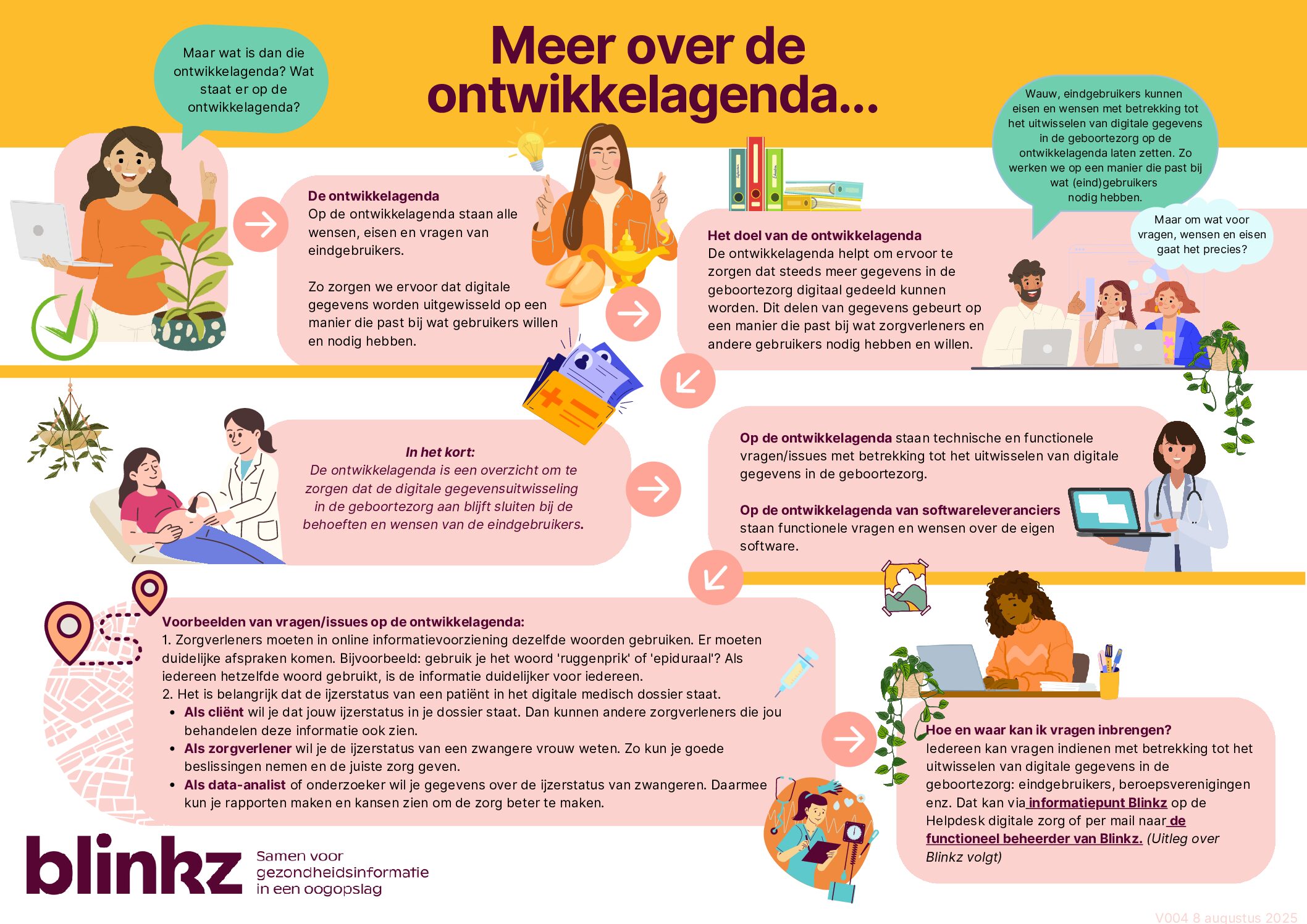 De functioneel beheerder verzamelt alle vragen van eindgebruikers, organisaties of beroepsverenigingen met betrekking tot digitale gegevensuitwisseling, werkt de vragen uit en bundelt vergelijkbare vragen. De functioneel beheerder is een belangrijke schakel in de geboortezorg en streeft er samen met team Blinkz naar dat digitale gegevens veilig en goed uitgewisseld worden.