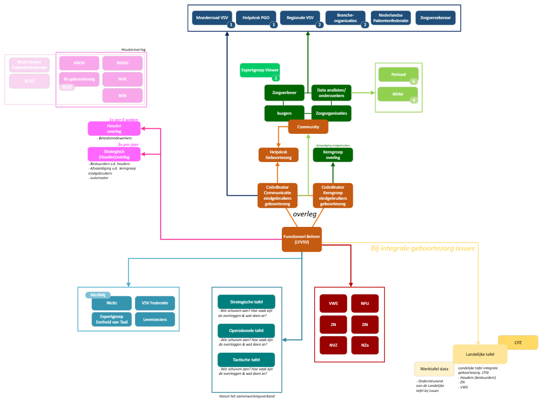 Overzicht van alle belanghebbenden die betrokken zijn bij het Duurzaam Informatiestelsel Geboortezorg (DIG):